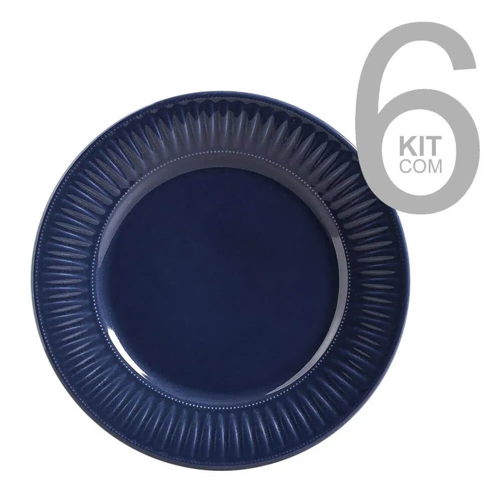 Conjunto c/ 6 Pratos Rasos Daisy Deep Blue Ø 26cm